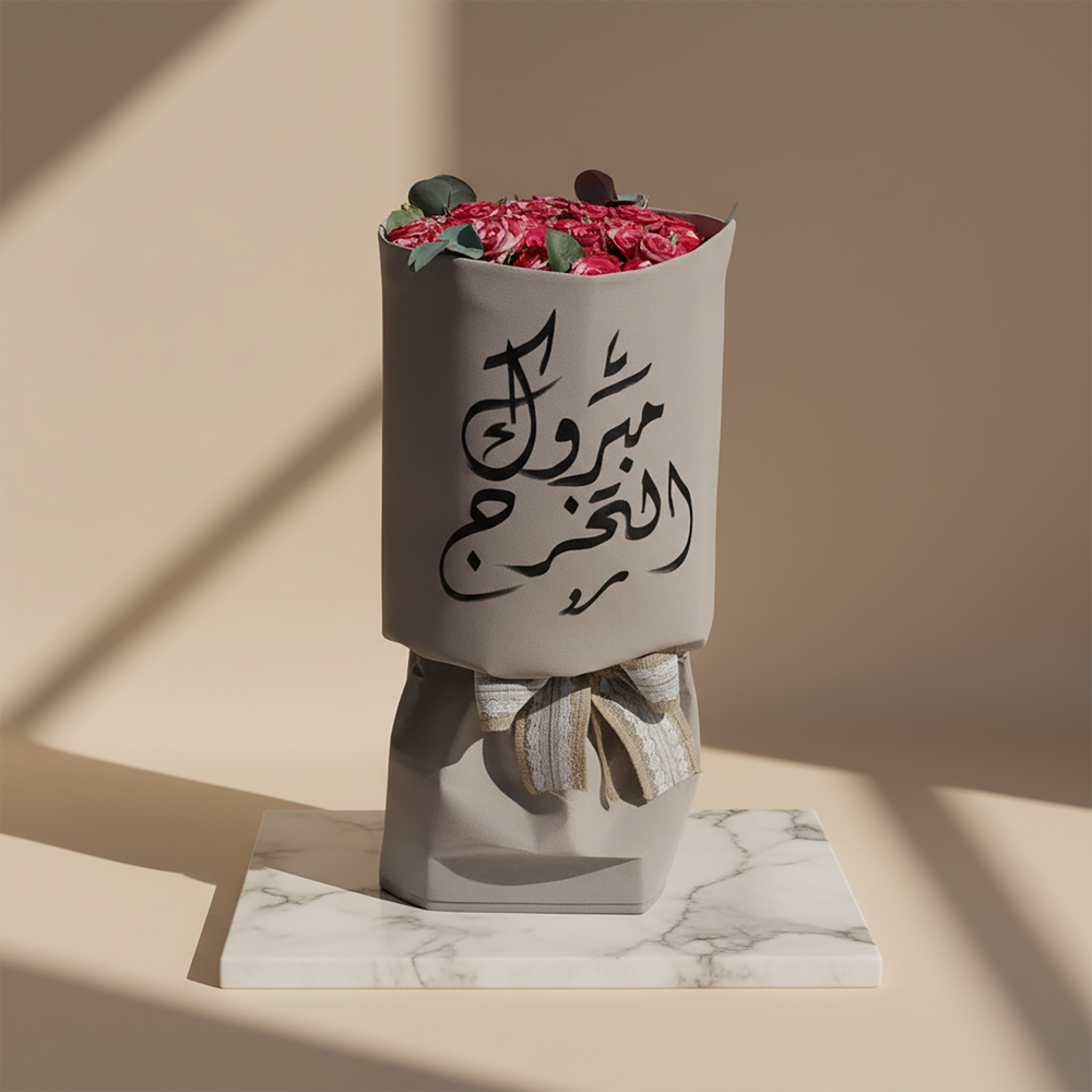 استمتع بأناقة بوكيه الورد الفاخر، المصمم بعناية ليأسر الأنظار ويضفي لمسة من الجمال على أي مناسبة. كل وردة مختارة بعناية لتضمن جمالها وطول عمرها، ويأتي البوكيه مع إمكانية كتابة أي عبارة تهنئة، ليجعل هديتك أكثر خصوصية. مثالي كهدية مميزة تعكس الفخامة والبساطة في آن واحد.