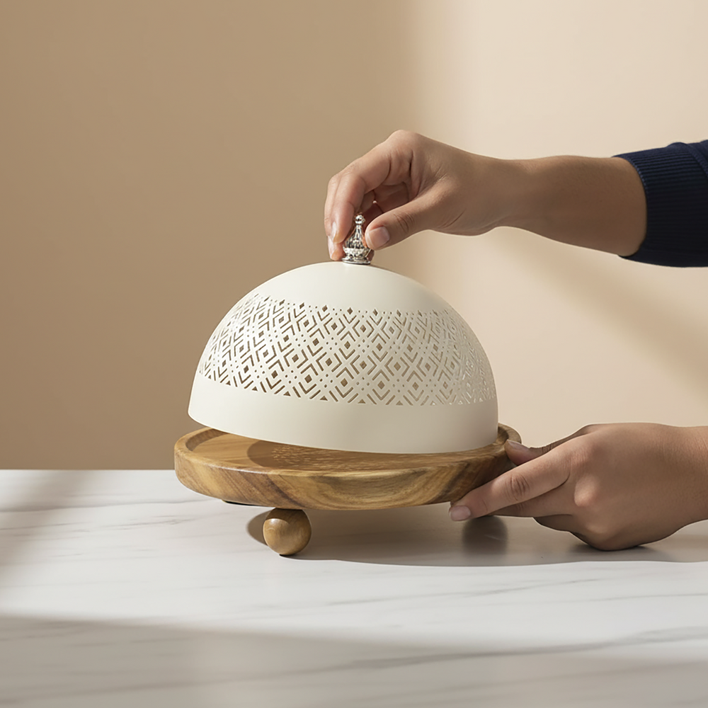 طبق خشبي كبير مع غطاء معدني